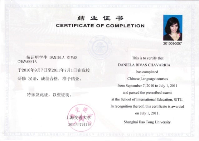 Jiao Tong Certificate Of Completition